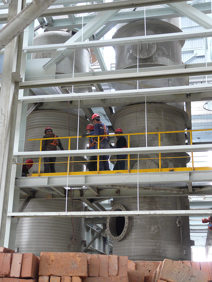孚拉瑞斯公司引進(jìn)先進(jìn)的螺旋纏繞疊加成型機(jī)組和工藝,筒節(jié)可一次加工成型,無(wú)焊縫,厚度可達(dá)65mm以上;同時(shí),可實(shí)現(xiàn)筒節(jié)上薄下厚,使筒節(jié)整體受力均勻、設(shè)計(jì)合理,可確保儲(chǔ)罐的機(jī)械強(qiáng)度和安全可靠性。